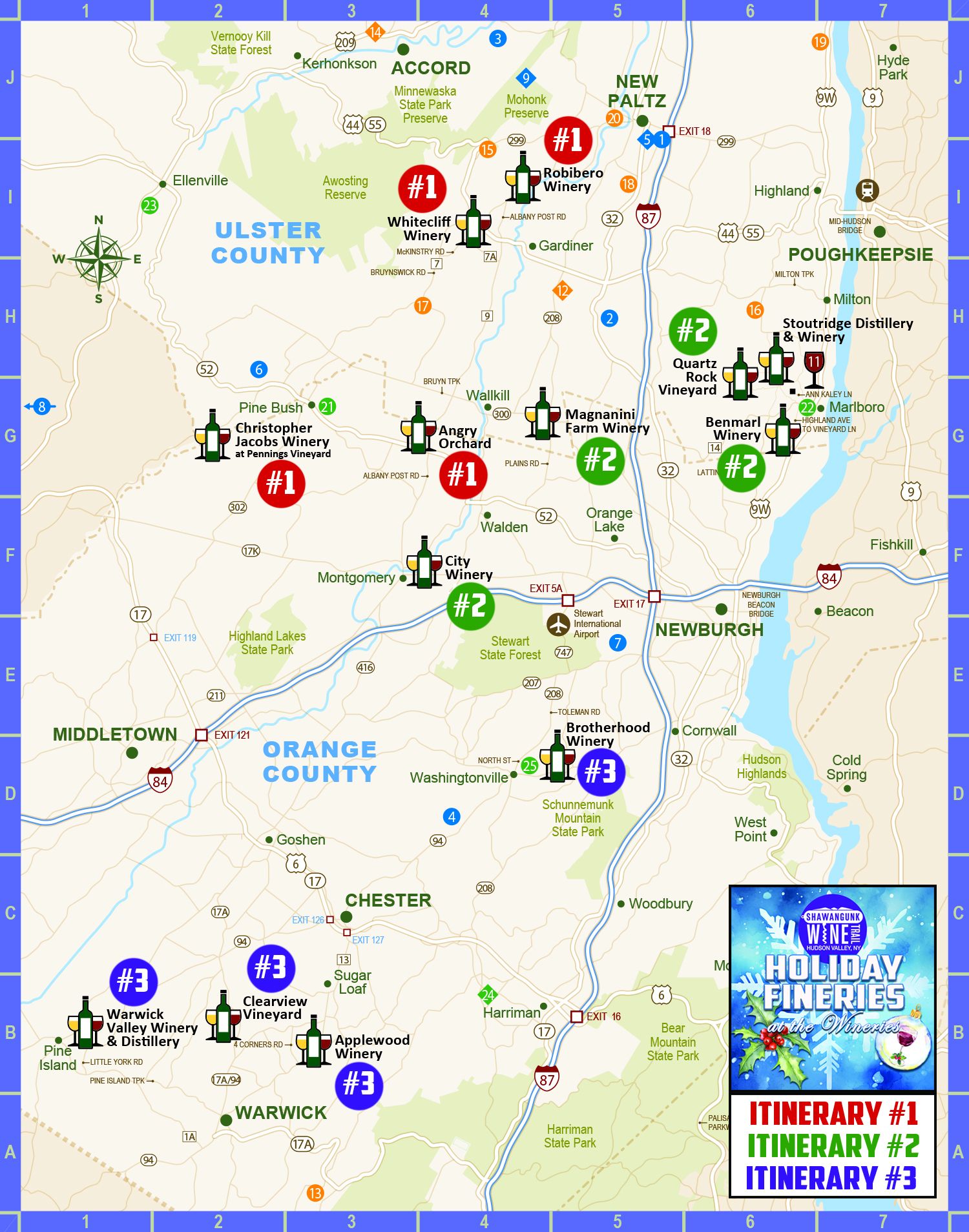 Brotherhood, America's Oldest Winery (Washingtonville) • Warwick Valley Winery & Distillery (Warwick) • Applewood Winery (Warwick) • Clearview Vineyard (Warwick)