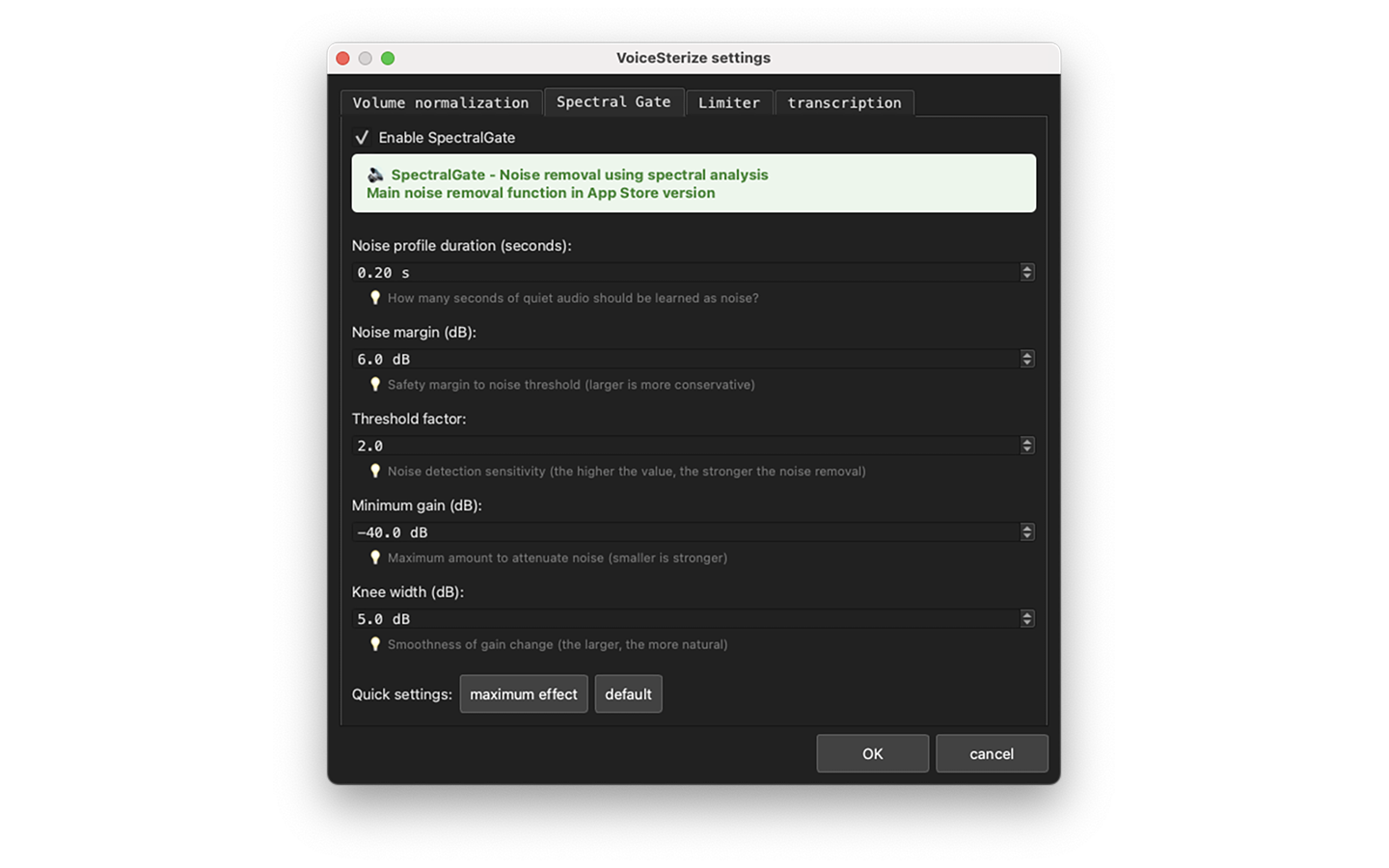 - "SpectralNoiseGate": Protects the voice while surgically removing noise.