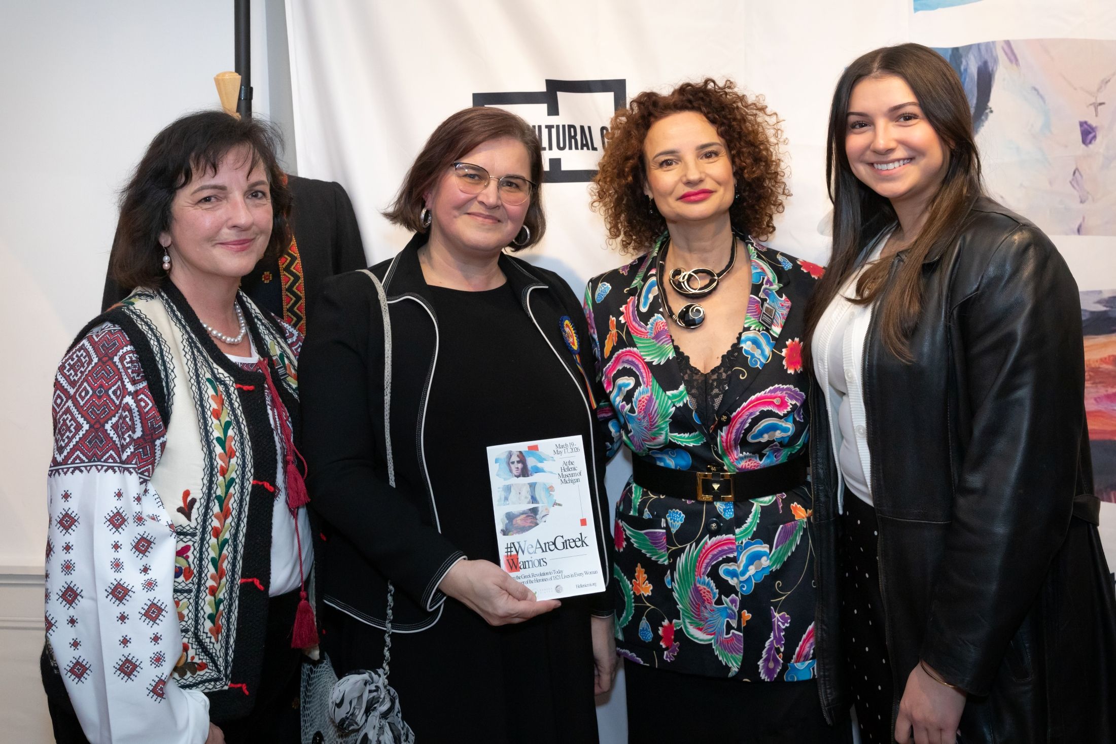 The exhibition brings together women's history, Greek history, art, and women's empowerment, capturing strength and resilience across generations and cultures. Its wide-reaching impact was reflected in the evening's distinguished guests, including Consuls General of Greece Emmanuel Koubarakis and Georgia Tasiopoulou; representatives of the Romanian Consulate; Andreea Bordeianu, Ph.D., of the American Romanian Cultural Society of Detroit; and Cristina Stamatin, representing Tangent Club USA, an international women's organization; and Barbara Heller, director and conservator, special projects at Detroit Institute of Arts. The evening also drew artists, influencers, and community members from across the greater Detroit area, all coming together to celebrate the opening. To date, the Museum has welcomed visitors from Illinois, Texas, Pennsylvania, Florida, New York, and even South Africa.